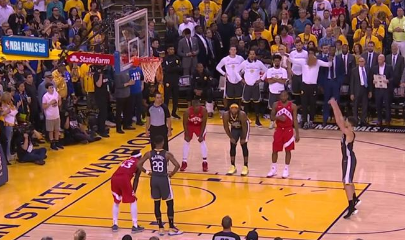 G6一戰勇士隊抱著誓死的決心,在上一場傷了杜蘭特之後,勇士全隊早已經眾志成城,不為輸贏,只為甲骨文主場最後堅強的一戰,於是G6湯被暴龍隊重點照顧了,Leonard一上來親自防守湯普森,整個總冠軍賽沒有出現過,但即便如此,湯普森依舊神勇,連續命中不講理的三分,勇士隊看上去形勢大好,Iguodala也不再隱忍自己的出手,但是就當所有人看好勇士隊贏下這一場比賽時,老天又給勇士隊一次沉重的打擊。
