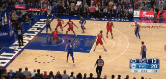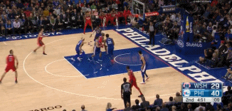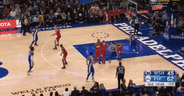 進入第四節後,76人在比賽還剩10分鐘的時候一度將比分拉開到22分,但在之後巫師替補席突然爆發,再加上巫師主帥祭出瘋狂「砍」Simmons戰術,3分鐘內讓Simmons12次走上罰球線,這徹底打亂了76人的節奏,巫師一度將比分追到只差3分。