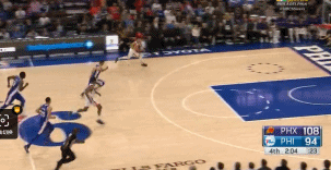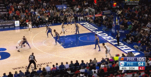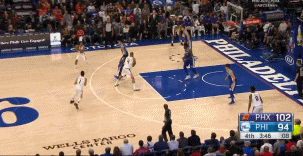 被Booker一人打得完全沒有招架之力的76人隊,隨後又遭到了這位得分狂人的抄截。Booker一人快下,雙手完成暴扣,徹底殺死比賽。