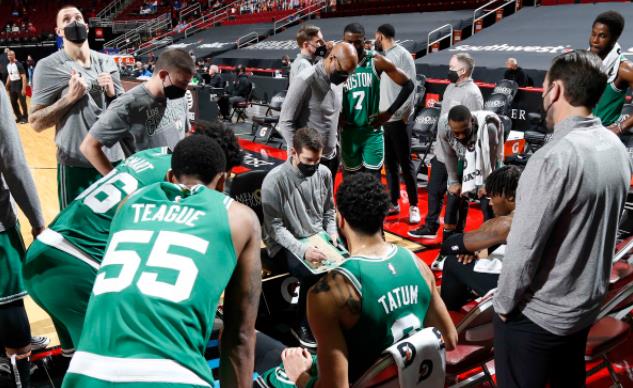 易邊再戰後Walker一上來就連得11分、Brown三分也中,塞爾提克領先了23分。火箭零星得分而塞爾提克繼續多點開花,節末Tatum又連得7分,三節過後塞爾提克以104-72領先了32分。火箭在二三節都只得到19分,比賽早早失去懸念。