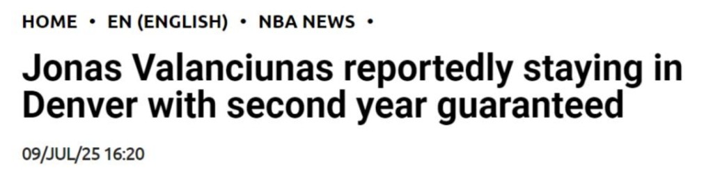 7月10日,據歐洲籃球媒體eurohoops報導,瓦藍邱納斯(Jonas Valančiūnas)的鬧劇即將迎來結局,這位立陶宛中鋒儘管收到了帕納辛奈科斯隊開出的報價,但預計下賽季將留在丹佛金塊隊效力。