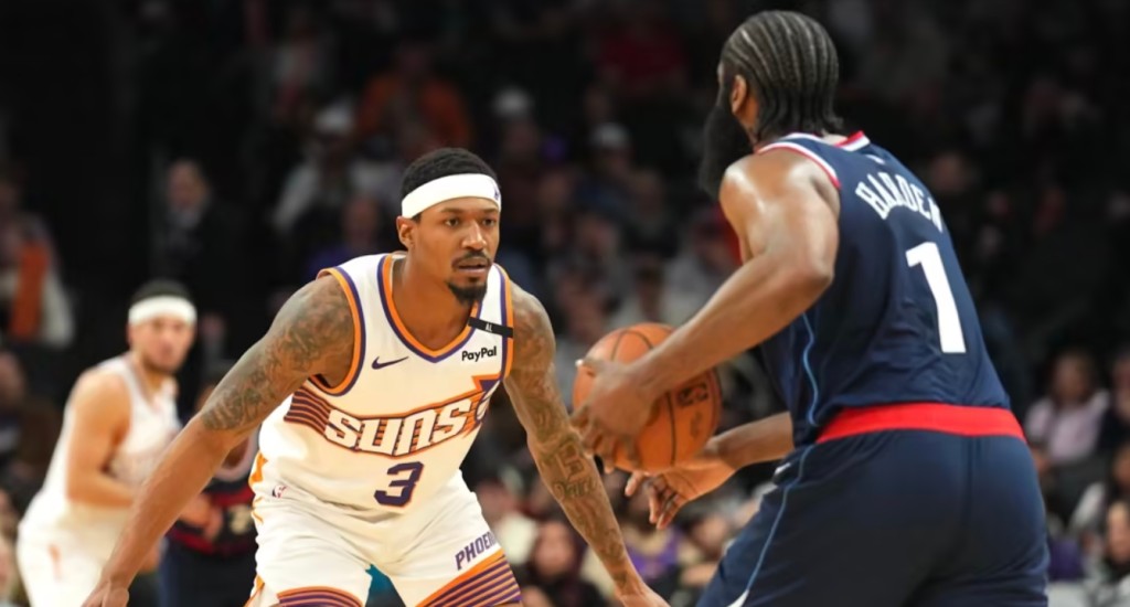 比爾在23年休賽期被巫師交易至太陽,隨後與布克、杜蘭特組建三巨頭。他在太陽首個賽季與球隊以西區第6的身份進入季後賽,在首輪被灰狼橫掃出局。