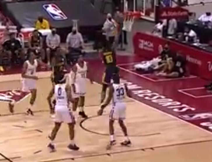 08.15夏季聯賽速遞:Jackson三分不中,隨後隊友搶到籃板在把球傳到他手里,再助攻Robinson完成灌籃!